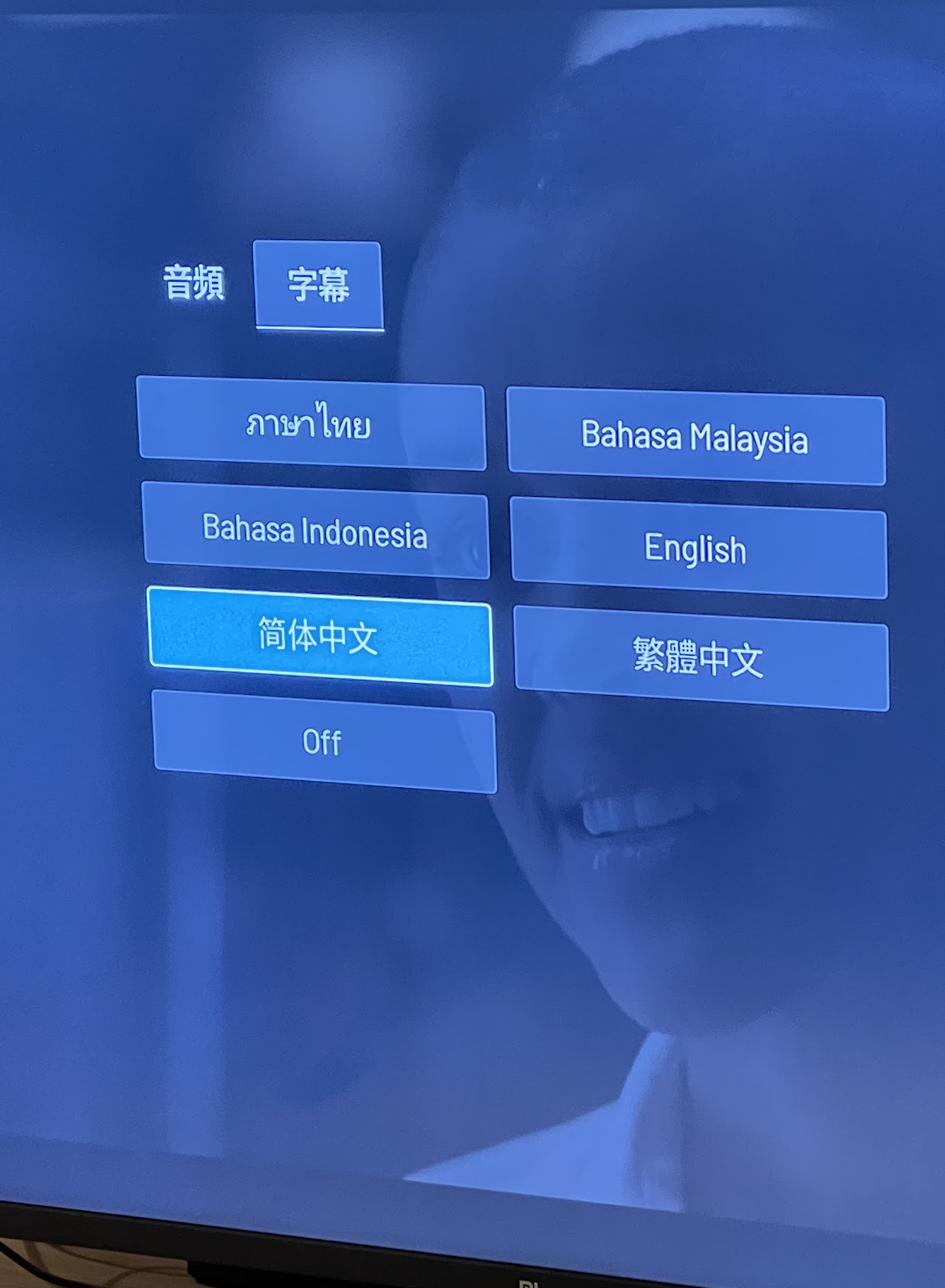 选中播放器右下角"语言"按钮 [右2] [右1为"选集"按钮]